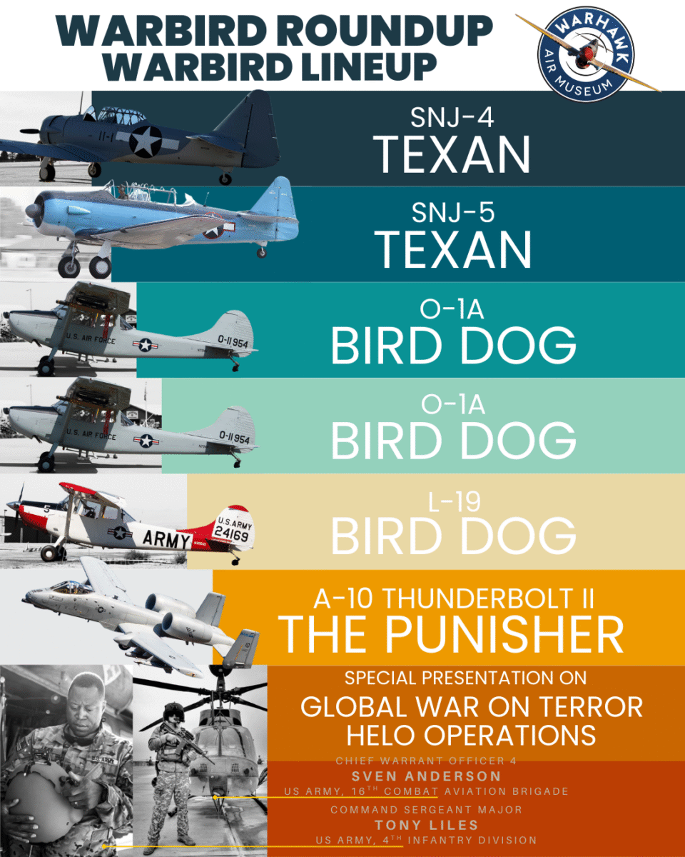 Our Warbird Roundup guest speakers will be Sven Anderson and Tony Liles! Both will speak about their experiences and helo operations during the Global War on Terror.