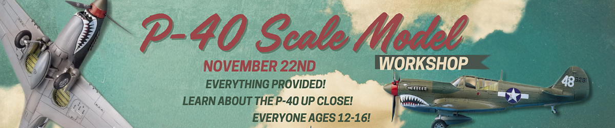 Come join us at the museum to build the venerable P-40 Warhawk scale model. Learn about the history of the P-40 and basics of scale modeling as you build a detailed model of our namesake and one of the most famous WWII aircraft that won the hearts of the Allies.