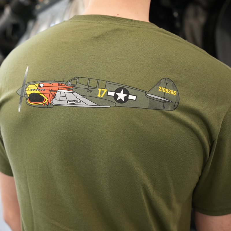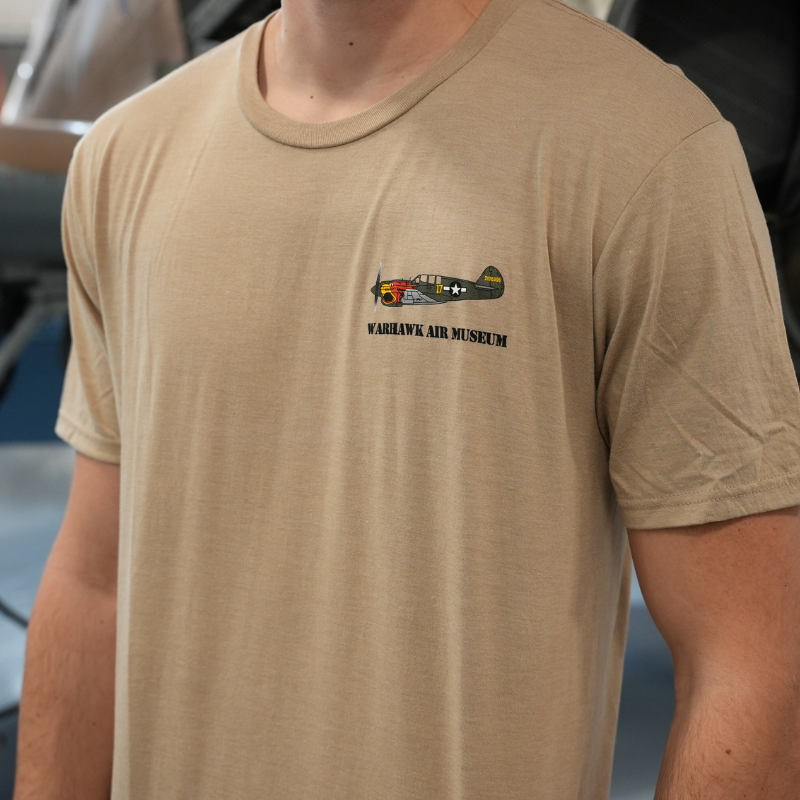 Celebrate the iconic P-40N Warhawk with the bold “Parrot Head” design on a soft, lightweight tri-blend tee. Perfect for aviation enthusiasts, WWII fans, and museum visitors who love history with style and comfort.