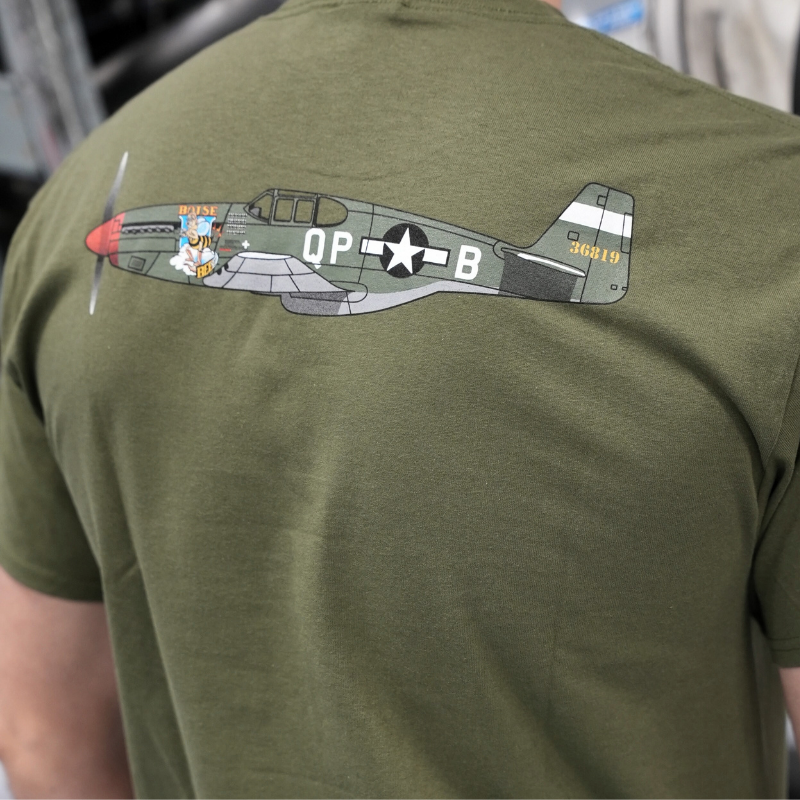 Celebrate one of the most iconic fighters of WWII with our P-51 Mustang T-shirt. Featuring bold aircraft artwork and museum-inspired detailing, this soft, comfortable tee is perfect for aviation enthusiasts, veterans, and Mustang fans of all ages. A classic piece of history you can wear anywhere.